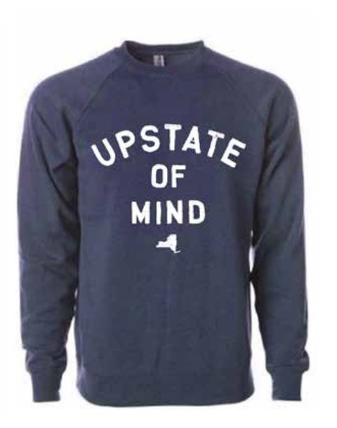 The Upstate of Mind Crew is a super soft polyester/cotton blend fleece. We used the finest inks for soft cozy feel on this graphic fleece.