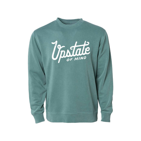 Upstate of Mind Heritage Script Crew Neck – Pigment Dyed Forest Wash